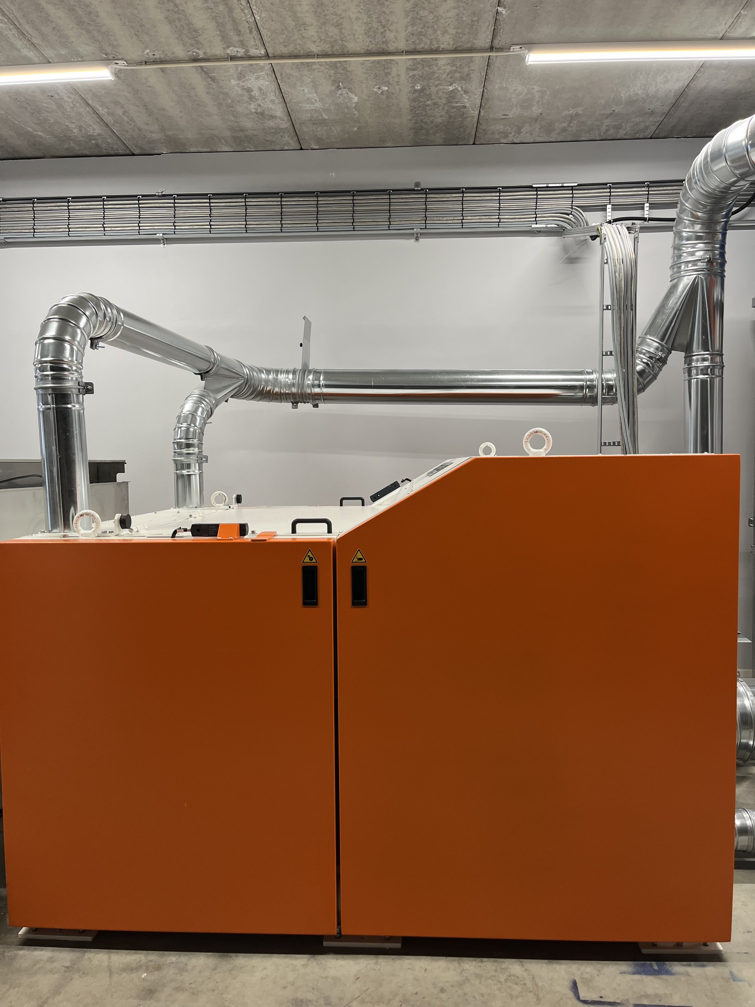 It is a high-tech machine with a combination of mechanical recycling and a digital control center for adjustments of machine settings.